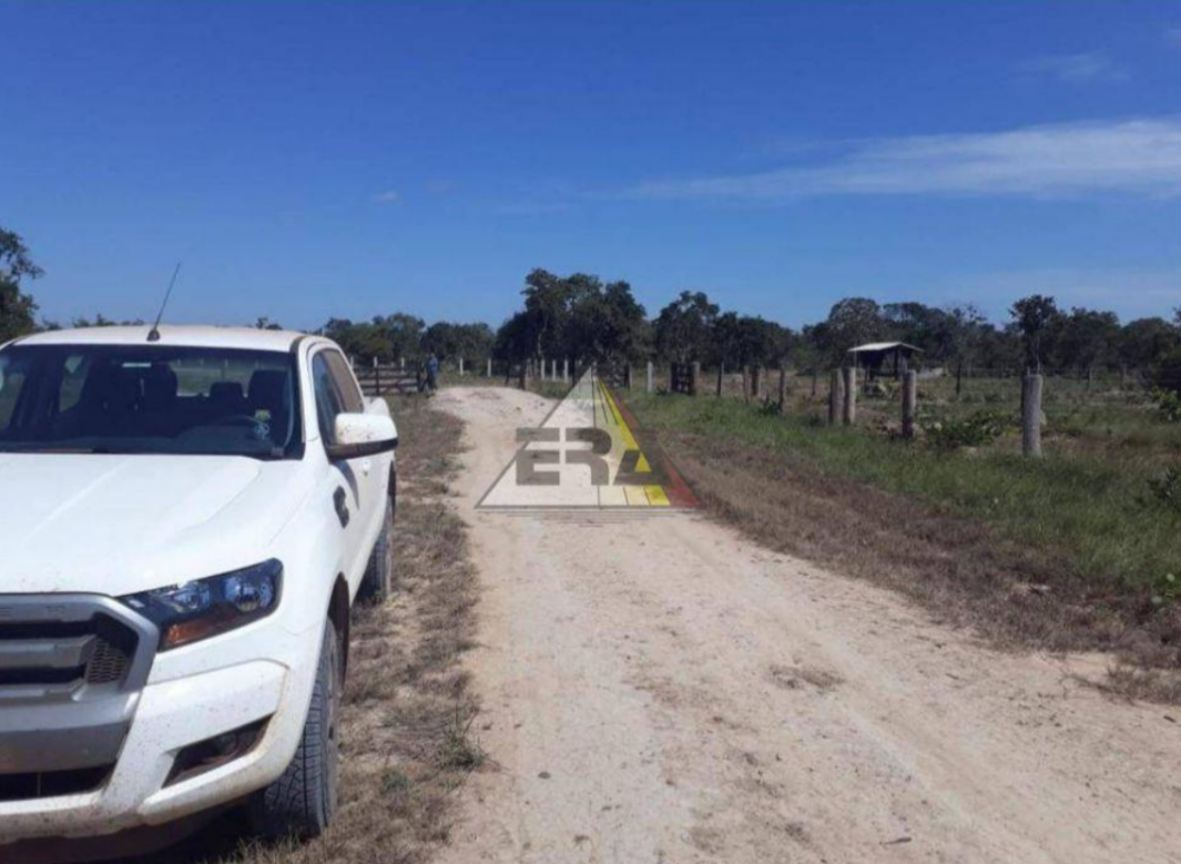 A propriedade possui aproximadamente 12,5 km de comprimento por 2,5 km de largura, sendo cortada ao meio por uma estrada, o que facilita o acesso e a logística interna.